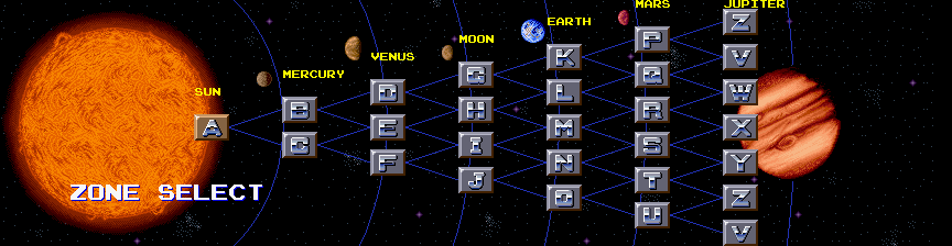 And finally, at each of these junctions, you'll have to choose between two directions, each leading to different tracks.(A very nice feature which we get in some shmups as well. For example, this stage select in Darius!)